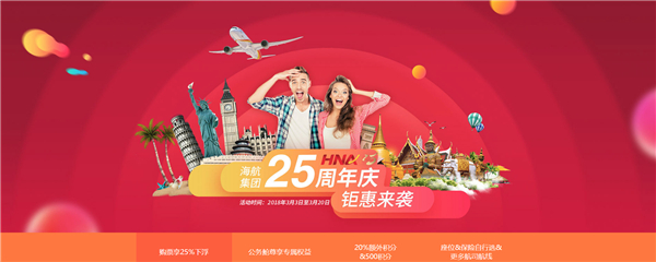 海航集团25周年庆锯惠来袭,25%下浮让你飞往更多地方!