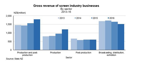 新西兰统计局2015/16年度电影业的统计数据显示,去年新西兰影视产业的营收增长了3%,达到了33亿纽币。