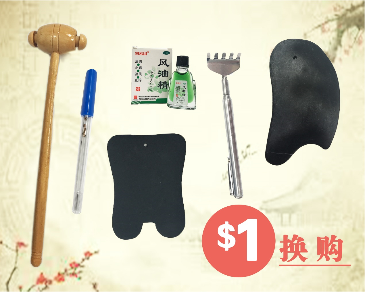 风油精、按摩捶、体温计、刮痧板、痒痒耙
