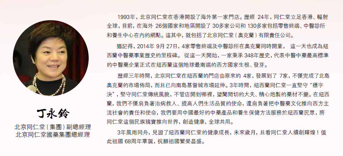 目前,北京同仁堂已覆盖新西兰南北岛,七家门店为新西兰各个族裔的健康保驾护航。3年来,真诚感恩新西兰海外华人乃至各族裔的支持与信任。