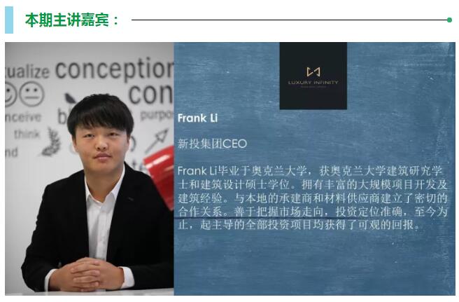 本次活动将针对大选之后,新西兰经济与房市走向与大家展开讨论!让您充分了解市场走向。