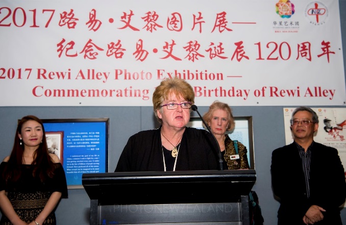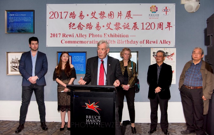 中国驻奥克兰总领事馆张和清文化领事,新西兰华星艺术团李芬团长,新西兰中国团体联合会郭宏会长,新中友协奥克兰分会Kris Sproull会长,及哈密尔顿分会Jenevere Foreman前会长,奥克兰国际摄影节Julia Durkin 总裁,路易.艾黎的侄子Patrick Alley, 路易.艾黎养子暨著名画家邓邦镇教授出席开幕式并讲话。大家追忆了艾老一生为中国的解放事业,为新中国的发展,为中国的青少年, 为新西兰与中国之间的友好关系所做出的巨大贡献。他是和平的使者,是国际主义的战士,是我们学习的榜样。