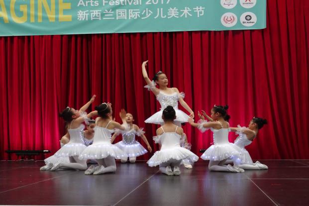 ”新西兰艺术学院”作为协办方之一,也带领着小朋友们为现场的观众们带来了一场妙趣横生的歌舞表演“剪纸姑娘”和“少儿芭蕾舞动弦乐曲”。