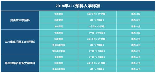 ACG学术教育集团受新西兰三所顶级大学的委托,独家教授奥克兰大学,AUT大学,惠灵顿维多利亚大学的大学预科桥梁课程。在ACG完成通过大学预科课程并达到大学入学标准的学生可以直接就读奥克兰大学、AUT奥克兰理工大学、惠灵顿维多利亚大学。以上三所大学预科证书学历被新西兰所有大学、理工学院以及澳大利亚重点大学承认和接受。