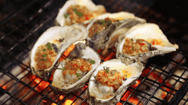 将蒜蓉、姜末等佐料置入轻撬开的生蚝壳内,直接放到炭火上烤,蒜蓉可以吸饱生蚝本身的腥味,鲜嫩的汁水和饱满的肉质,美味极了!