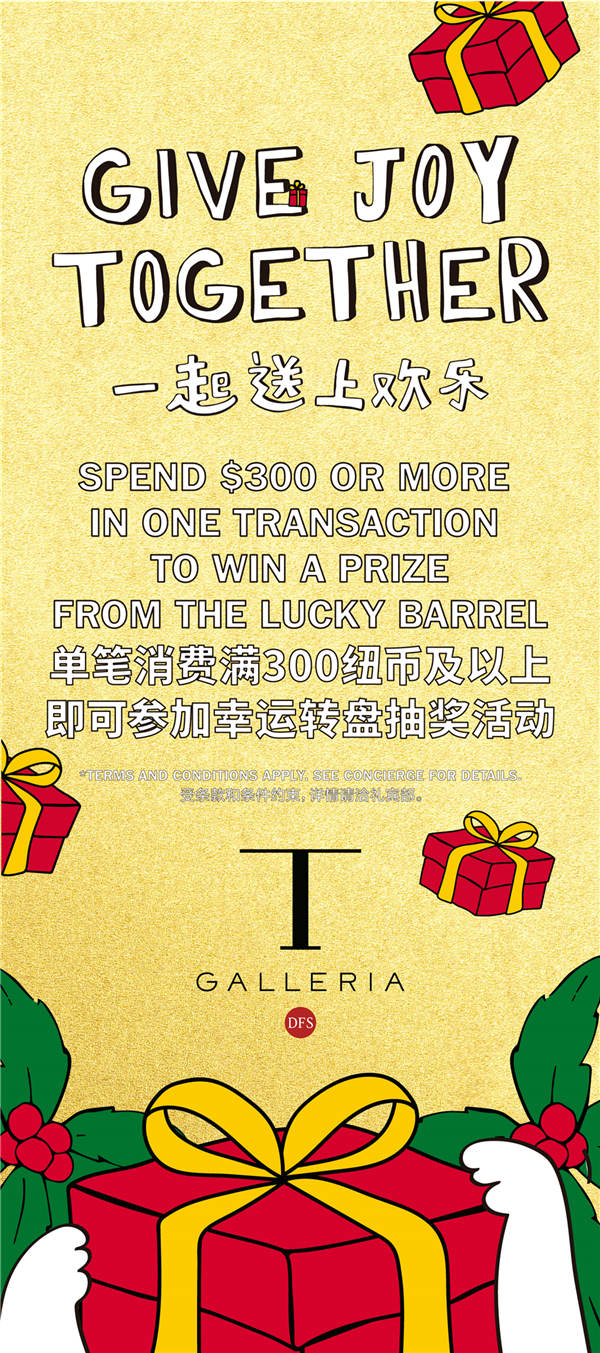 Loyal T会员或注册成为会员并消费超过300纽币并有机会赢取夏威夷双人游,或者回国双程机票(DFS与海南airline联合举办)。