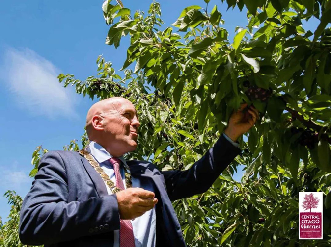 12月14号,中奥塔哥地区市长Tim先生亲自前往位于Cromwell水果小镇的车厘子果园考察2018季Central Otago Cherries的准备情况。