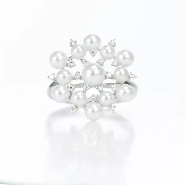 Mikimoto专柜同款,同一个生珠养殖场的baby akoya,同一个工厂制作,全日本精工~我们的价格低于专柜价。采用PT950镶嵌0.11ct钻石,3-3.5-4.5mm的正圆强光无暇白透粉带绿色伴彩Akoya共12粒。