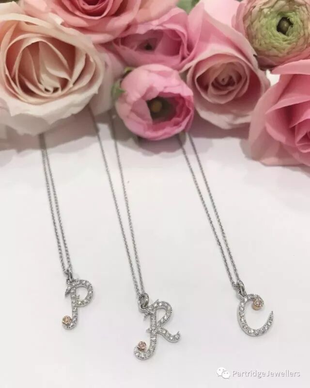 Partridge Jewellers “Letters of Love” 「爱之语」吊坠系列使用18K白金和玫瑰金,并镶嵌天然白钻与粉钻;选择爱人名字中的字母,透过独特设计的字母,在浪漫情人节给你爱的她送上最美丽的惊喜。