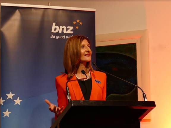 今晚最重要的一幕当属BNZ新任CEO, Angie Mentis的初次华社亮相。这位优雅大方的CEO一亮相就成为全场的焦点,在BNZ企业部合伙人Franky Wang的引导与介绍下,Angie与华社政界,商界,媒体,亲切交谈,与大家进行交流。