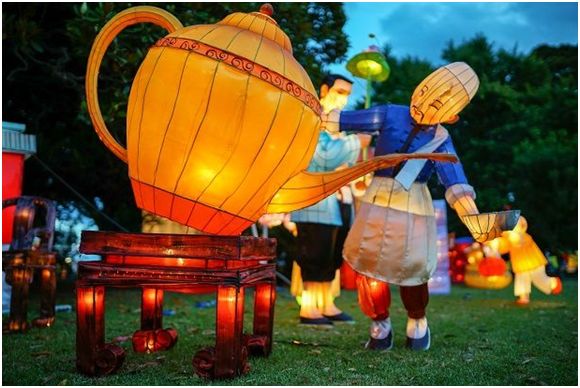 各式各样绚丽缤纷的花灯在古典优雅的奥克兰博物馆白色建筑的衬托下,具有了一种时代的变化感,似一种不一般的美丽在草坪上绽放。