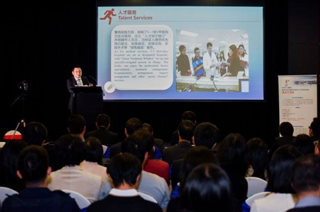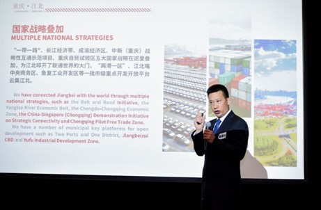 重庆市江北区人力资源和社会保障局副局长粟雄伟介绍江北区引才政策情况