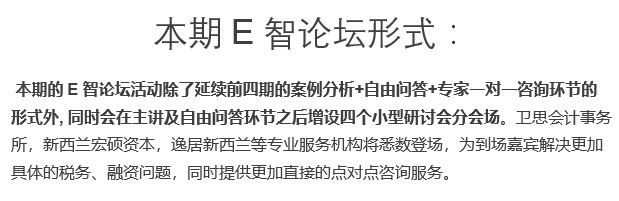 在一年半的时间内成功举办过四次论坛之后,E智论坛一直在思考,如何在目前这个复杂多变的市场里,创造一个更加权威,更加专业的交流互动平台,汇聚各行业对政策讯息有着精准把握的专业人士,收集各方面一手资讯以及行业一线最直观的真实案例,为投资者答疑解惑。
