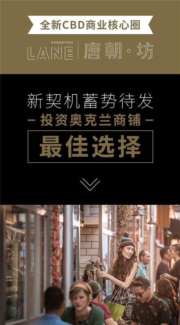 全新CBD商业核心圈 、Sugartree LANE 唐朝坊 、新契机蓄势待发——投资奥克兰商铺最佳选择。