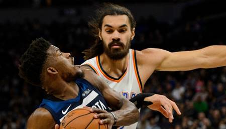 斯提芬。亚当斯,新西兰中锋,著名铅球选手瓦拉里。亚当斯的弟弟,身体条件超级强壮,2.13的身高,体重达到116公斤,著名的蓝底野兽,2013年第一轮12位被雷霆队选中。从2013-14赛季开始,亚当斯在威少以及杜兰特的带领下,每年都有明显的进步,2017-2018赛季,虽然有安东尼以及乔治的加盟,但是亚当斯却是对内最耀眼的明星之一。在这个让人失望的赛季中,除了威少连续两个赛季的场均三双之外,NBA最好的“卡锋”亚当斯,是各大体育媒体最关注的亮点,赛季成绩13.9分/9篮板(5前场篮板),在他的协助之下,威少场均三双篮板非常稳。