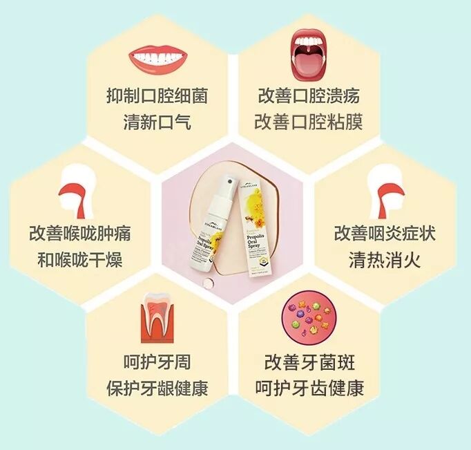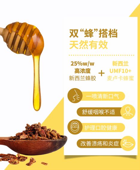 它蕴含着天然稀有成分高浓度蜂胶,300余种活性成分,帮助人体建立起一道天然防护,能够显著抑制口腔及咽喉细菌,改善口腔炎症,改善咽喉痒痛,就连折磨人的口腔溃疡也退散了!