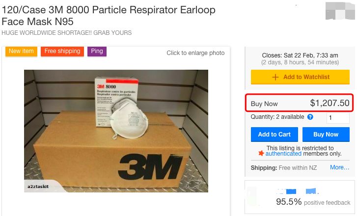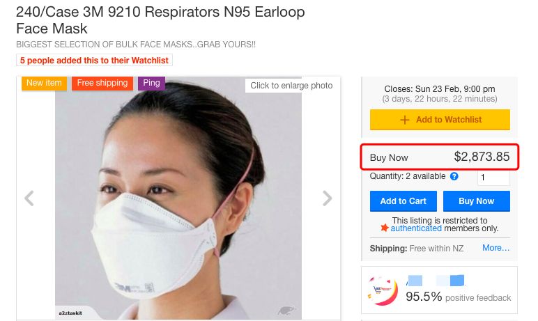 在新西兰本地最大的交易网站Trademe上,一些口罩也是卖出了令人瞠目结舌的天价!